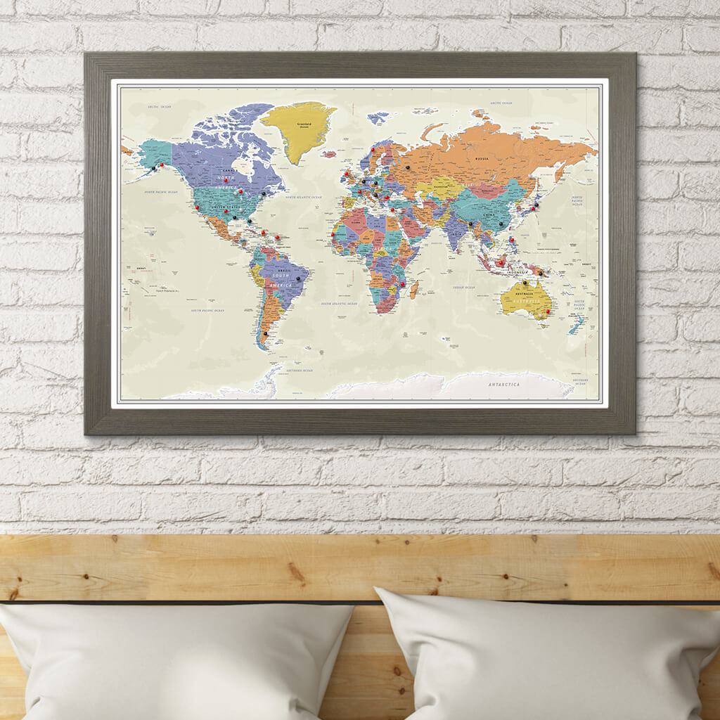 Amazon.com: Wall Map of The World With Push Pins Framed Map With
